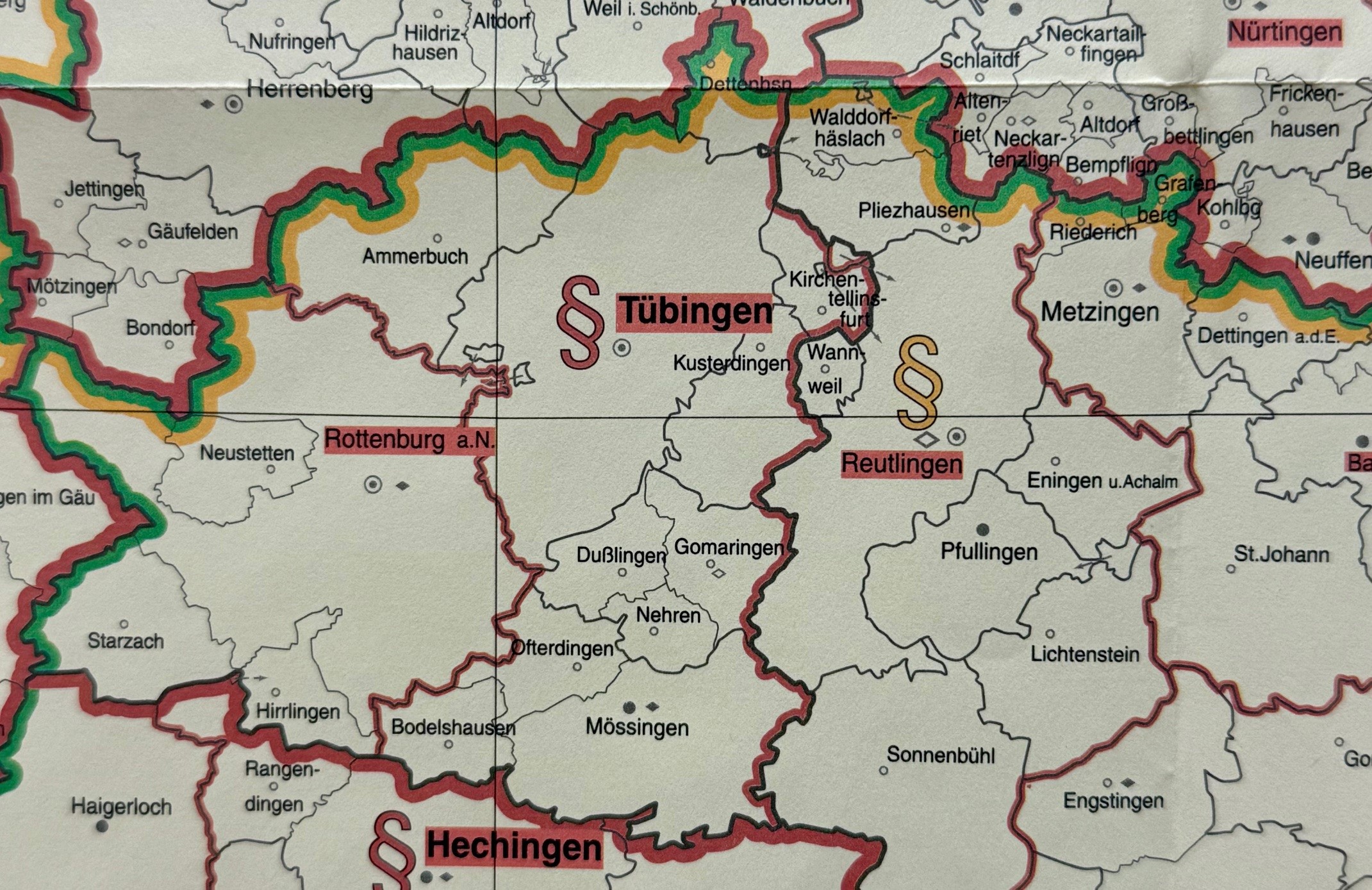 Ammerbuch, Bodelshausen, Dettenhausen, Dußlingen, Gomaringen, Kirchentellinsfurt, Kusterdingen, Mössingen, Nehren, Ofterdingen und Tübingen.
